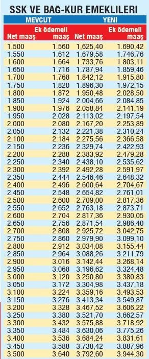 SSK ve Bağ-Kur emeklilerinin ek ödeme dahil maaşında yüzde 8.36 zam ile 554,30 liraya varan artış yaşanacak.