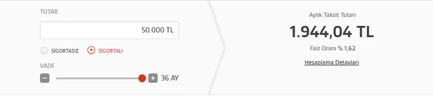 50.000 TL İÇİN FAİZ ORANI 1,62