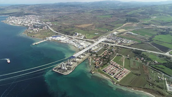 Öte yandan, Çimtaş firması tarafından Gemlik ve Gölcük'teki fabrikalarında üretilen her biri 45 metre genişliğinde, 48 metre uzunluğunda ve 700 ton ağırlığındaki 14'üncü tabliye bloğu da Gelibolu Sütlüce'deki şantiye alanına ulaştı.