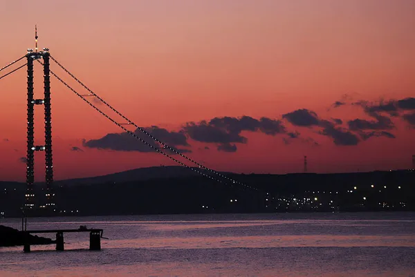 Tamamlandığında dünyanın en uzun orta açıklıklı köprüsü unvanına sahip olacak olan 1915 Çanakkale Köprüsü’nde göz kamaştıran bir görüntü ortaya çıktı. Kedi yolunun tamamlanıp ışıklandırılmasıyla Çanakkale Köprüsü günbatımında tam bir görsel şölen yaşatıyor.