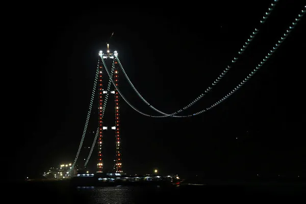 1915 Çanakkale Köprüsü ana halatlarının çekilmesi sırasında çalışma platformu olarak kullanılacak olan 4 bin 330 metre uzunluğundaki kedi yolu tamamlanarak, ışıklandırıldı. Kısa süre içerisinde ana halatların çekilmesine başlanacak.