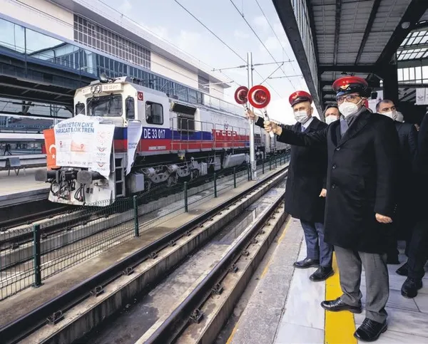 Demir İpek Yolu'nun en stratejik bağlantı noktası haline gelen Türkiye, Çin ve Rusya'ya beyaz eşya ve bor taşıyan trenlerini dün Ankara'dan uğurladı. Enerji Bakanı Fatih Dönmez, Eskişehir Kırka'dan yola çıkan rafine bor ürünlerinin 2 haftada Çin'in Xian şehrine ulaşacağını söyledi. Ulaştırma Bakanı Adil Karaismailoğlu ise "Ülkemizde üretilen 3 bin 321 bulaşık makinesi, ocak ve fırın, Rusya'nın Vladimir bölgesine taşınacak" dedi.