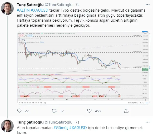 Mevcut dalgalanma enflasyon beklentisini arttırmaya başladığında altın güçlü toparlayacaktır. Haftaya toparlanma bekliyorum. Teşvik konusu asgari ücretin artışının pakete eklenememesi nedeniyle gecikiyor." dedi.