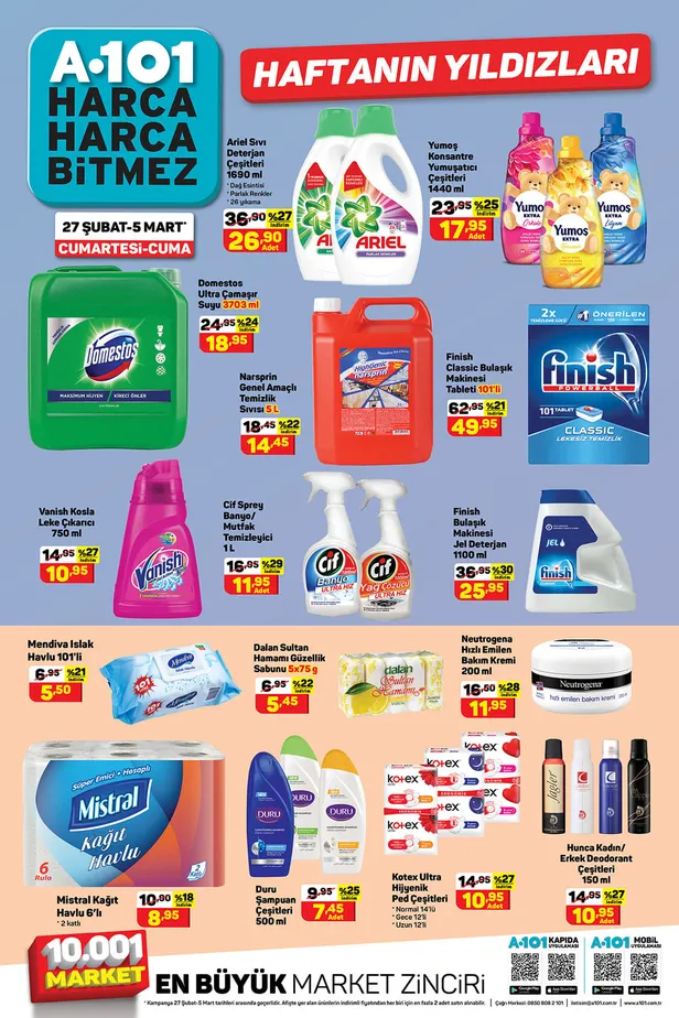 A101 aktüel ürünler kataloğu 27 Şubat-5 Mart 2021 yayınlandıktan sonra vatandaşlar tarafından merakla araştırılmaya başlandı. Farklı kategoride pek çok ürünü uygun fiyatla satışan sunan, en çok ziyaret edilen marketlerde A101 haftanın yıldızlarında bu hafta neler var? Atıştırmalıklardan deterjanlara, Dardanel ton ürünlerinden zeytinyağına pek çok fırsat sizleri bekliyor. A101 aktüel ürünler kataloğu 27 Şubat-5 Mart 2021 haberimizden inceleyerek alacaklarınızı belirleyip, liste yapabilirsiniz.