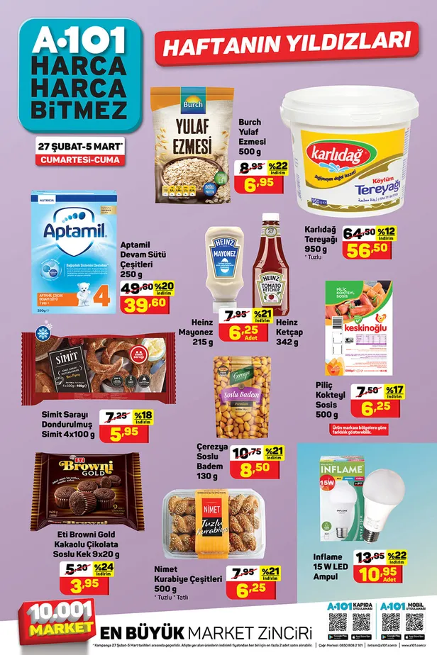 A101 aktüel ürünler kataloğu 27 Şubat-5 Mart 2021 heyecanla bekleniyordu ve yayınlanır yayınlanmaz hemen incelenmeye, alacaklar belirlenmeye başlandı. A101 aktüel ürünlerde yine birbirinden güzel indirimler ön plana çıkıyor, evinizin gıda ihtiyaçlarını karşılamak ve bunu uygun fiyatla yapmak isteyenler haberimizden güncel kataloğa ulaşabilir. A101 marketler hafta içi 10:00-20:00 hafta sonları ise 10:00-17:00 saatleri arasında hizmet veriyor. İşte katalog…