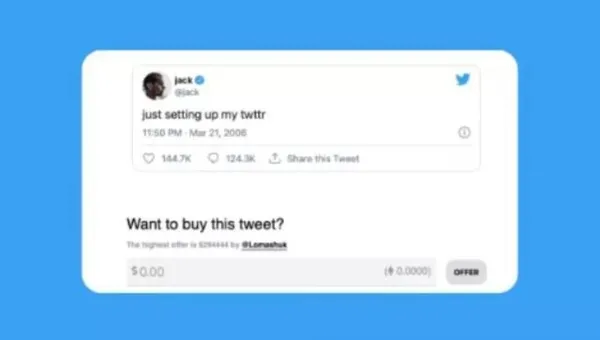 Twitter CEO'su Jack Dorsey'in ilk tweet'i açık artırmada 2.5 milyon dolara satıldı. Alıcının Malezya'da yaşayan Türk asıllı Cryptoland'in ve Bridge Oracle'ın CEO'su Sina Estavi olduğu öğrenildi.