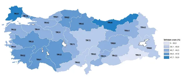 En yüksek istihdam oranı %50,9 ile TR21 (Tekirdağ, Edirne, Kırklareli) Bölgesi'nde gerçekleşti. En düşük istihdam oranı ise %26,0 ile TRC3 (Mardin, Batman, Şırnak, Siirt) Bölgesi'nde oldu.