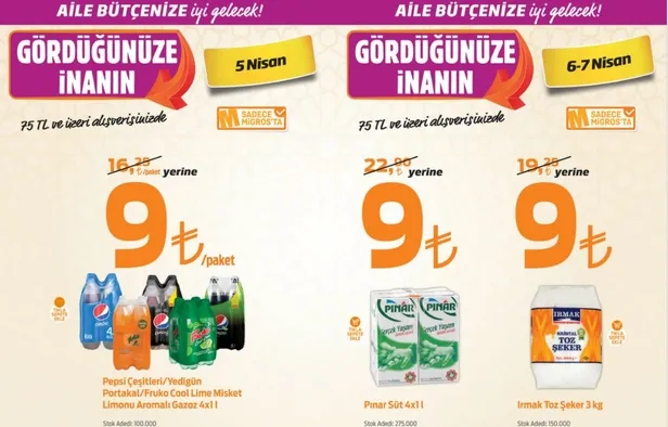 Migros aktüel ürünler kataloğu yayınlandı ve vatandaşlar tarafından merakla incelenir oldu. Belirli tarih aralığında birbirinden güzel ve çeşitli ürünleri uygun fiyatlarla satışa sunan, en çok ziyaret edilen marketler zinciri yeni kampanyalarıyla dikkat çekiyor. Migroskop Nisan ayı indirimlerinde yiyeceklerden içeceklere, temizlik ürünlerinden kişisel bakıma, bebek ürünlerinden güzellik fırsatlarına kadar daha pek çok ürün ön plana çıkıyor. Migros şubelerine gitmeden önce güncel Migroskop kataloğu haberimizden inceleyerek alacaklarınızın listesini yapabilirsiniz.