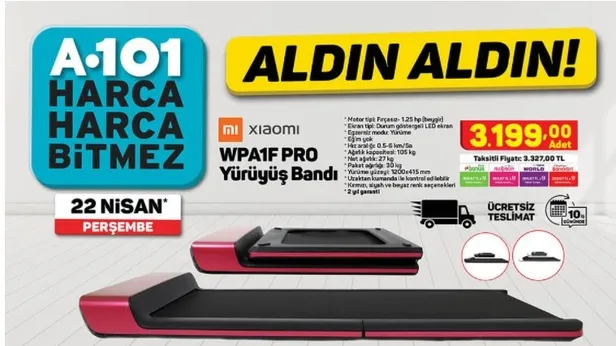A101 aktüel ürünler kataloğu 22 Nisan 2021 Perşembe! A101 aktüel ürünler yine dopdolu! Yürüyüş bandı fırsatı…