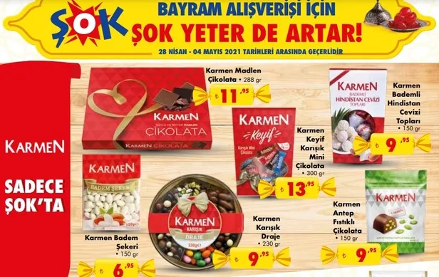 Merakla ve heyecanla beklenen ŞOK aktüel ürünler kataloğunda Ramazan Bayramı’na özel indirimler dikkat çekiyor. 28 Nisan 4 Mayıs tarihlerinde geçerli olacak, pek çok kategoride ürünlerde fırsatlar ön plana çıkıyor. Özellikle Ramazan Bayramı’na özel çikolata ürünlerindeki çeşitlilik ve uygun fiyat yoğun ilgi görüyor. ŞOK aktüelde ankastre ürünlerde fırsatlar da dikkat çekiyor. Tencere setlerinden cam ürünlere, gıda ürünlerinden kolonyaya ŞOK aktüel ürünler kataloğu kampanyalarını haberimizden inceleyebilirsiniz.