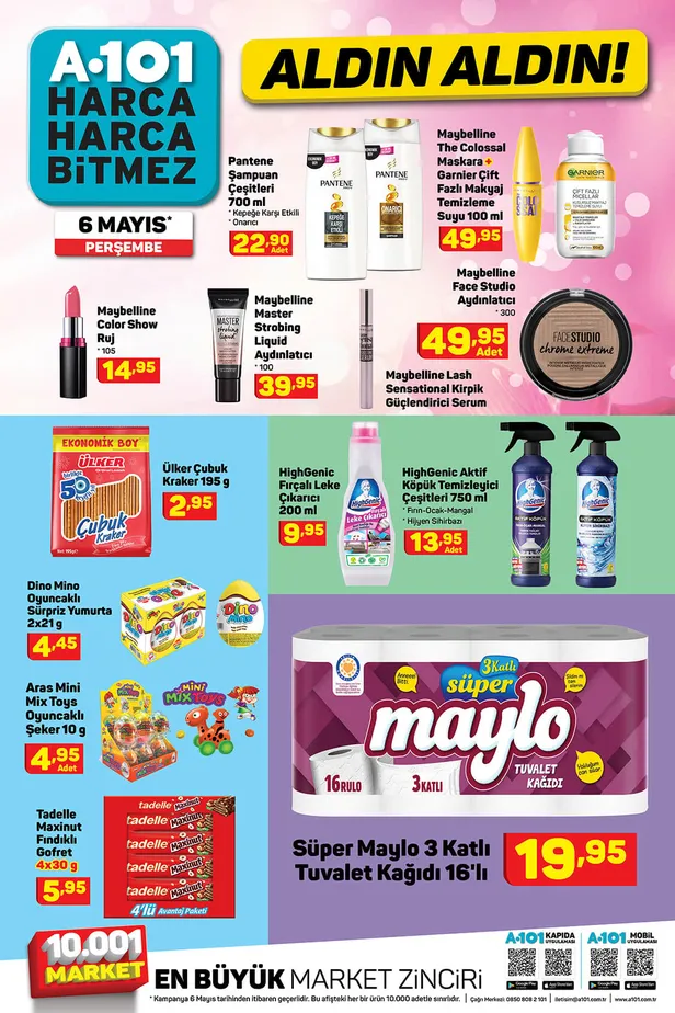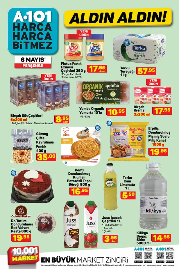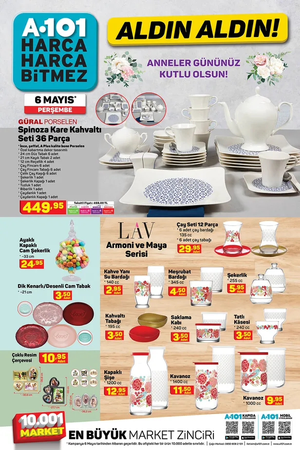 En çok ziyaret edilen marketler zinrici A101'de her Perşembe birbirinden güzel ve çeşitli ürünlerde kampanyalar yapılıyor. Bu hafta da uygun fiyatlarla özel ürünleri satışa sunan A101 aktüel ürünler kataloğu 6 Mayıs Perşembe'de Anneler Günü'nden Ramazan Bayramı'na özel ürünler dikkat çekiyor. Temel gıdadan kişisel bakıma, mutfak eşyalarından oyuncaklara, valiz setinden oyuncaklara daha pek çok kategoride seçenekleri bulabilirsiniz. Güncel A101 aktüel kataloğu haberimizde inceleyebilir, alacaklarınızı belirleyebilirsiniz.