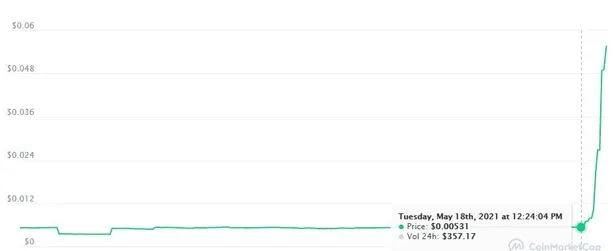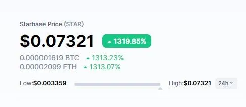 Elon Musk'un paylaşımı öncesi 0.005 dolar olan Starbase, Elon Musk'ın paylaşımı sonrası 0.073 dolar seviyesine kadar yükseldi.