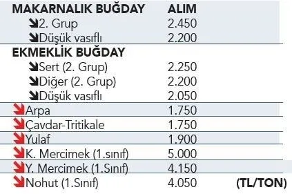 Buğdayın kalitesine göre açıklanan fiyatlar üzerine yüzde 2 ilave fiyat da uygulanacak. Ekmeklik buğday fiyatı yüzde 36.4 artırılmış oldu. Yine açıklanan bu fiyatlarla hububatta üretici ton başına yüzde 31 kâr elde etme şansı yakaladı. Arpa, çavdar ve tritikale 1.275 liradan 1.750 liraya çıkarken, yulafın fiyatı ise 1.900 lira olarak belirlendi. Geçen yıl 3.550 lira olan kırmızı mercimeğin tonu 5 bin TL'ye, 3.200 lira olan yeşil mercimek 4.150 TL'ye, nohut ise 3.350 liradan 4.050 TL'ye çıktı.