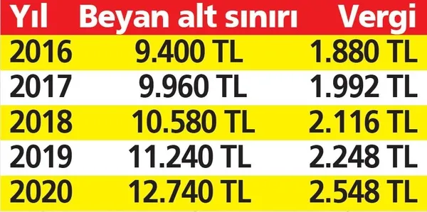 Meclis maratonu süren yeni yapılandırma paketiyle ev sahiplerine de matrah artırımı imkanı sağlanıyor. Teklife göre; geliri sadece kiradan oluşanlar belli bir sınırın altında kalmamak şartıyla matrah artırımı yapabilecek ve böylece vergi denetiminden kurtulacak. Alt sınır 2016 yılı için 9 bin 400, 2017 yılı için 9 bin 960, 2018 yılı için 10 bin 580, 2019 yılı için 11 bin 240 ve 2020 yılı için de 12 bin 740 liradan az olamayacak. Matrah artıranlar ilgili yılın istisna tutarını kullanamayacak. Beyan edilen gelirin yüzde 20'si ödenecek. Buna göre, ödenecek en düşük vergi; 2016 yılı için bin 880, 2017 için bin 992, 2018 yılı için 2 bin 116, 2019 yılı için 2 bin 248 ve 2020 yılı için de 2 bin 548 lira olacak.