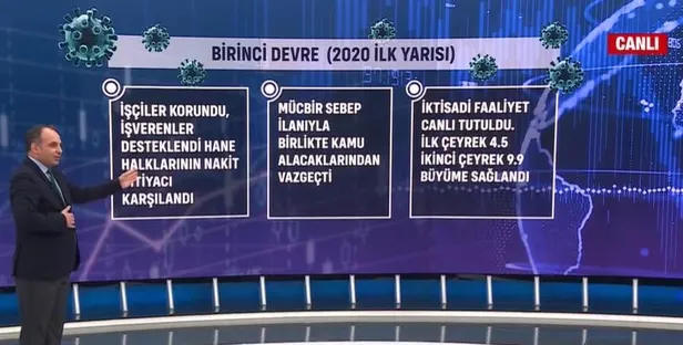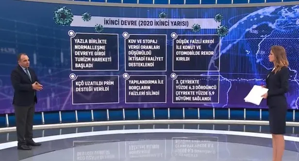 Dünyayı esir alan koronavirüs salgınına rağmen 2020 yılını pozitif büyümeyle kapatan iki ülkeden biri olan Türkiye ekonomisi, alınan tedbirler ve sağlanan destekler sayesinde içeride dışarıda yapılan saldırılar, kaos oluşturarak kriz şakşakçılığı ile iktidar devşirmek isteyenlere inat, 2021'in ilk çeyreğinde beklentilerin üzerinde yüzde 7 büyüyerek tüm dünyadan pozitif ayrıştı. Peki Türkiye rekor büyümeyi nasıl gerçekleştirdi? Türkiye'nin büyümesinin perde arkasındaki "3 devre" detayı ne? Büyüme başarısını yazan politikalar ne zaman devreye sokuldu? Takvim Gazetesi Ekonomi Müdürü Faruk Erdem, Türkiye'yi dünyadan pozitif ayrıştıran o detayı anlattı.
