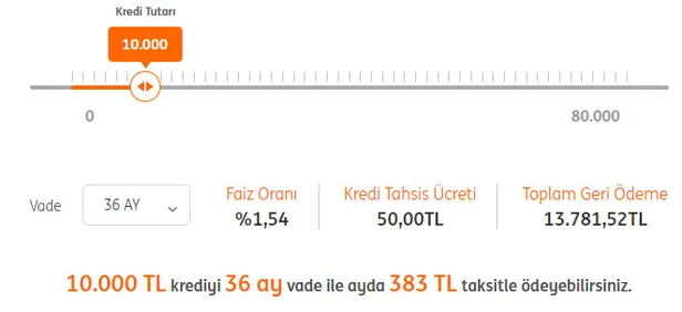 Faiz ve vade oranları müşteri özelinde, findeks kredi notuna göre değişiklik gösterebilir.