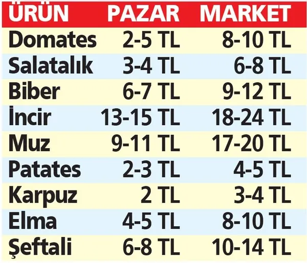 Sebze meyvedeki fiyat oyunları bitmek bilmiyor. Tarladan çatala kadar yüzde 400 zamlanan ürünler marketler arasında da farklılık gösteriyor. Hatta aynı marketin farklı şubelerinde bile ürünlere değişik etiketler konuluyor. Bu arada pazar tezgahları ile market rafları arasında da aynı ürünlerde yüzde 60'a varan farklar oluşuyor.