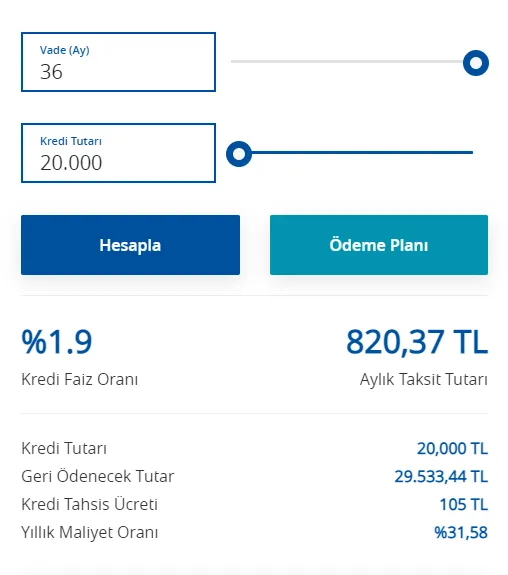 Vatandaşlar ATM üzerinden gerçekleştirecekleri işlemle kredilerini çekebilecek. Vatandaşlar, 20 bin TL tutarında kredi için yüzde 1,90'lık bir faiz oranı ile beraber geri ödeme yapabilecek. 36 aya varan vade imkanlarıyla beraber vade süresini artırabilir. Takvim.com.tr sizler için en doğru bilgileri araştırıyor.