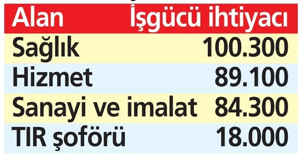 2020'nin son çeyreğinde sağlık ve sosyal yardım alanındaki işgücü ihtiyacı yüzde 56.9 artarak 100 bin 300 rakamıyla rekor seviyeye ulaştı. Konaklama ve yemek hizmetlerinin de içinde bulunduğu hizmet sektörü ise 89 bin 100 kişi ile en fazla eleman açığının bulunduğu ikinci sektör oldu.