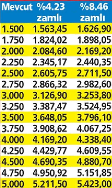 En yüksek aylık 7 bin 492 liradan 7 bin 809 liraya çıkacak.