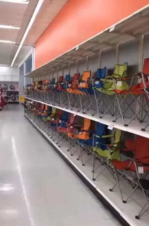 Sosyal medyada yayınlanan tuhaf bir videoda, bir mağazada boş raflar boyunca çok sayıda renkli katlanır çim sandalye görülüyor. Videoyu paylaşan bir Twitter kullanıcısı "uçurumun kenarındayız" yazdı.