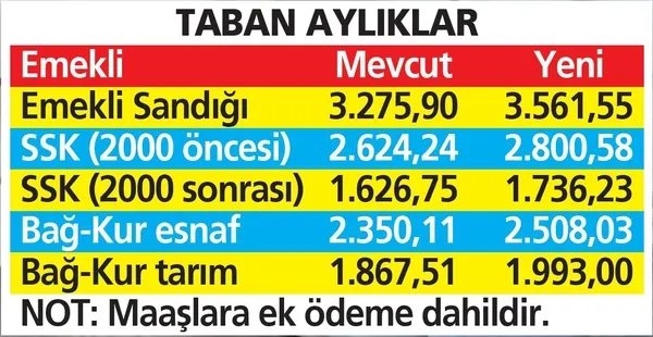 Buna göre SSK ve Bağ-Kur emeklilerinin zammı yüzde 6.72'ye ulaşırken, memur ve memur emeklilerine de yüzde 5'lik zamma ilaveten yüzde 3.72 enflasyon farkı oluştu.