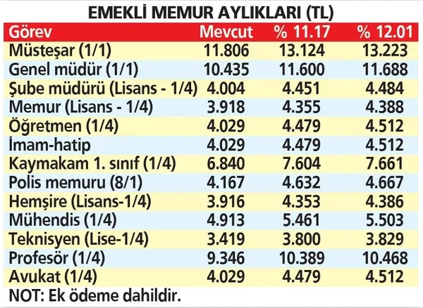 Buna göre Ocak artışı yüzde 12.01'i bulacak. En düşük emekli aylığı 3 bin 275 liradan yüzde 8.72'lik orana göre 3 bin 561 liraya çıkacak.