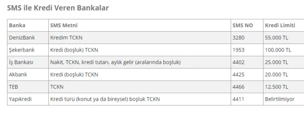 Öncelikle kredi kullanmak dilediğiniz bankanın SMS müracaat numarasını ve hangi verileri söyleyerek müracaat yapıldığını yukarıdaki tablomuzdan ya da bankanın internet sitesinden öğrenin.