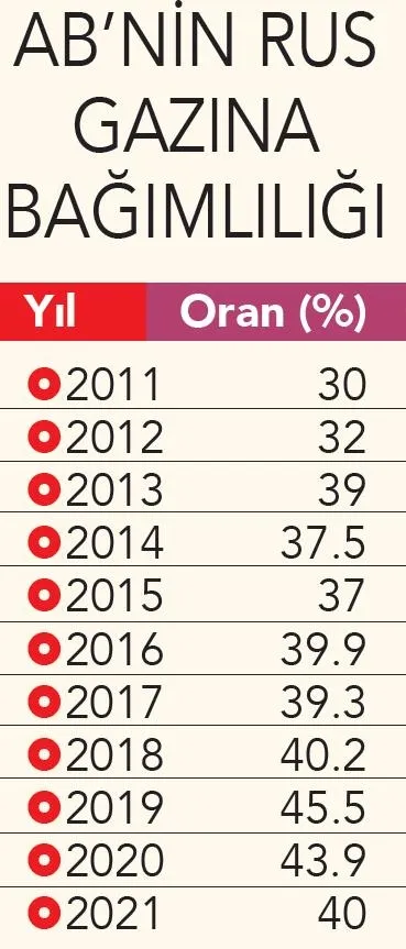 Oxford Enstitüsü Enerji Çalışmaları Uzmanı Katja Yafimava, Avrupa'da doğal gaz fiyatlarının rekor seviyelere ulaşmasının piyasalardaki endişe ve panikten kaynaklandığını söyledi. Yafimava, "Bu fiyatlar, piyasanın Rus doğal gaz arzının tamamının kesilmesinden korktuğu anlamına geliyor. Ancak bu korkular arzın duracağı anlamına gelmiyor" ifadelerini kullandı. AB ülkelerinin Rus gazına bağımlılığı 2011 yılından beri hızla artıyor. Uluslararası Enerji Ajansı verilerine göre, Avrupa'nın geçen yıl Rusya'dan ithal ettiği 155 milyar metreküp gaz, toplam ithalatının yüzde 45'ini ve toplam gaz tüketiminin yüzde 40'ını oluşturdu. Durumu "karşılıklı bağımlılık" olarak nitelendiren uzmanlar, Avrupa'nın Rus gazının yerini kolayca dolduramayacağını ancak Rusya'nın da Avrupa'ya sattığı enerji emtialarından sağladığı geliri başka bir kaynaktan kolaylıkla elde edemeyeceğini savunuyor.