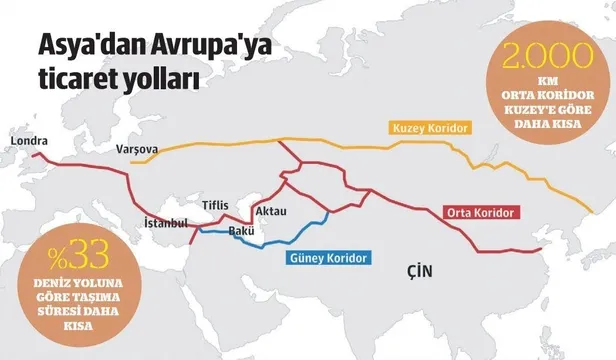 Asya ile Avrupa arasında ticaret ve ulaşım üç ana koridordan gerçekleştiriliyor. Rusya'nın içinde bulunduğu "Kuzey Koridoru", İran üzerinden geçen "Güney Koridoru" ve Türkiye'nin de dâhil olduğu "Orta Koridor". Ancak Rusya-Ukrayna savaşı nedeniyle Kuzey koridorunda yaşanan güvenlik sorunları nedeniyle hem Çin'de hem de AB'de alternatif güzergah arayışı başladı. Uluslararası Taşımacılık ve Lojistik Hizmet Üretenleri Derneği'nin (UTİKAD) Başkanı Ayşem Ulusoy, bu durumun Türkiye'den Kafkaslar'a, oradan da Hazar Denizi'ni aşarak Türkmenistan ile Kazakistan'ı da içine alan Orta Asya ve Çin'e ulaşan Orta Koridor'u daha da değerli hale getirdiğine dikkat çekti. Özellikle Türkmenistan, Kazakistan ve Azerbaycan limanlarında lojistik merkezler ve serbest ticaret sahaları kurulmasının, Trans-Hazar işbirliğinin gelişmesine ve derinleşmesine katkı sağlayacağı öngörülüyor.