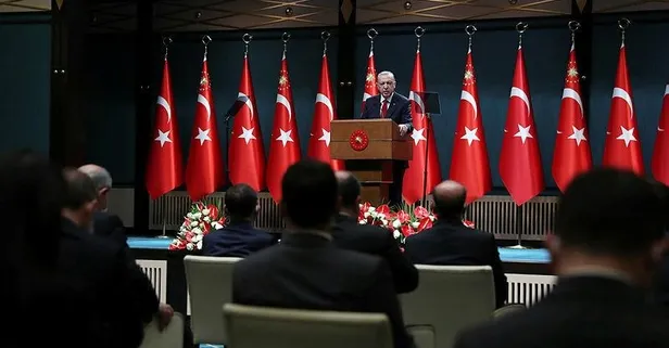 Başkan Recep Tayyip Erdoğan 3.5 saat süren Kabine Toplantısı'nın ardından kameralar önüne geçerek çeşitli açıklamalarda bulundu.