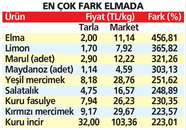 Mart'ta üretici-market fiyat farkında ilk sırayı yüzde 456.81 ile elmanın aldığını belirten Bayraktar, 3 üründe fiyat farkının yüzde 300'ün ve 7 üründe ise yüzde 200'ün üzerinde gerçekleştiğini ifade etti.