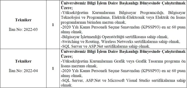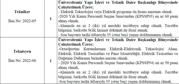 5- Tercih edilecek pozisyonun karşısında yer alan öğrenim düzeyinden mezun olmak, başvurunun son günü itibariyle aranan nitelikleri taşımak ve belgelendirmek.