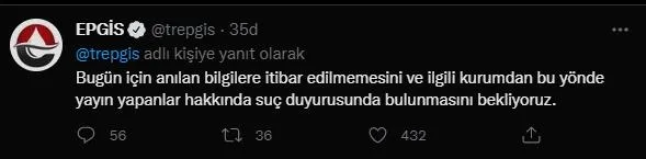 Konunun yargıya taşınması için çağrı yapan EPGİS'in sosyal medya hesabından, "Bugün için anılan bilgilere itibar edilmemesini ve ilgili kurumdan bu yönde yayın yapanlar hakkında suç duyurusunda bulunmasını bekliyoruz." ifadelerine yer verildi.