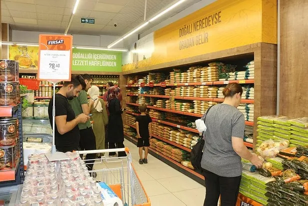Temel ihtiyaç maddelerini uygun fiyatlardan almak isteyen vatandaşların yoğun ilgisiyle küçük çaplı izdihamların yaşandığı marketlerde, sarı etiketli ürünler adeta kapışıldı.