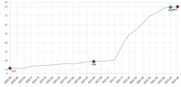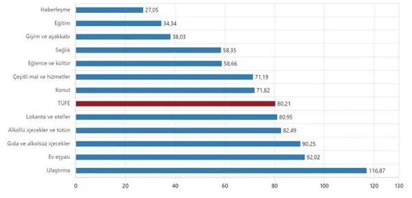 Türkiye İstatistik Kurumu (TÜİK), ağustos ayı enflasyon rakamlarını açıkladı. Tüketici fiyatları, aylık yüzde 1,46 artarken, yıllık enflasyon yüzde 80,21 oldu. ENAG ise enflasyonu yüzde 181 olarak açıkladı.