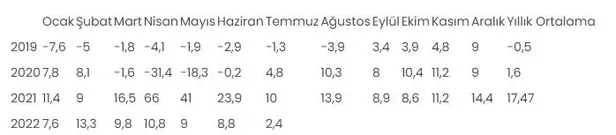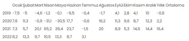 TÜİK verilerine göre, arındırılmamış sanayi üretim endekslerinin yıllık değişim oranları da şöyle: