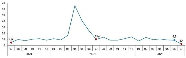 Son dakika haberi! Sanayi üretimi, temmuzda aylık bazda yüzde 6,2 düştü, yıllık bazda yüzde 2,4 artış gösterdi. Arındırılmamış sanayi üretim endeksinde de yıllık bazda yüzde 3,1 artış oldu.