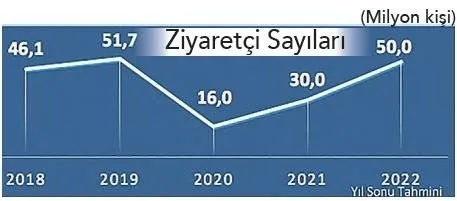 Dünyayı kasıp kavuran kovid döneminde bile başarılı bir strateji çizen Kültür ve Turizm Bakanlığı, hedefleri üçüncü kez revize etti. Yılsonunda 50 milyon turist, 44 milyar dolar gelir hedefleniyor. Turizm Bakanı Ersoy, “2019’u yakalarız” dedi.