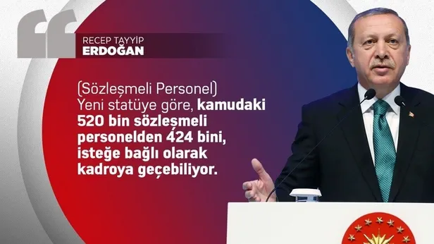 Bu kapsamda, kamudaki yaklaşık 520 bin sözleşmeli personelden 424 bininin memur kadrolarına atanabilmesine imkân sağlanmaktadır.