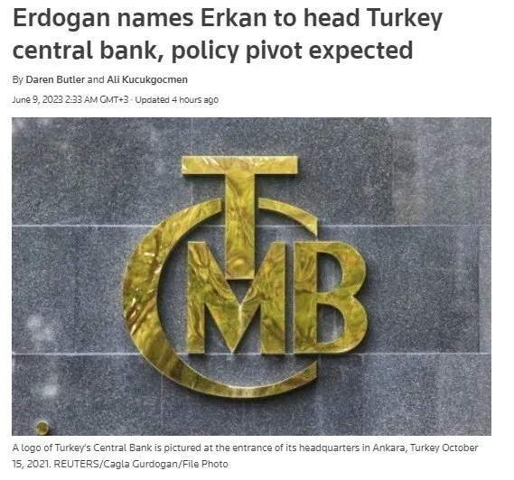 İngiliz haber ajansı Reuters, "Cumhurbaşkanı Erdoğan, ABD'de finans yönetici olan Hafize Gaye Erkan'ı Türkiye Merkez Bankası'nın başına atadı" sözlerine yer verdi.