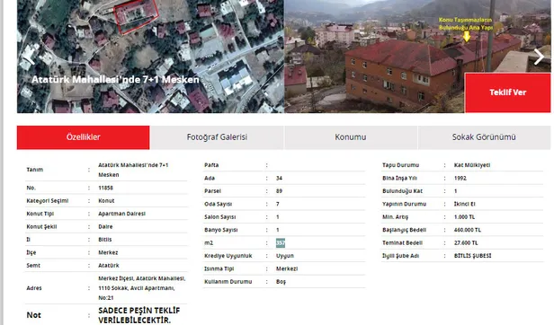 Posta gecikmelerinden banka sorumlu değildir. E-ihale yöntemiyle satılan taşınmazlarda ise en yakın Ziraat Bankası Şubesi'ne başvurarak taşınmazın muhammen bedelinin %6'sı oranında teminat yatırılmalı ve Gayrimenkul Satış Şartnamesi imzalanmalıdır.