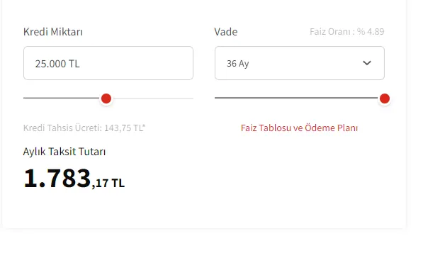 25.000 TL 36 Ay Geri Ödeme Hesaplama