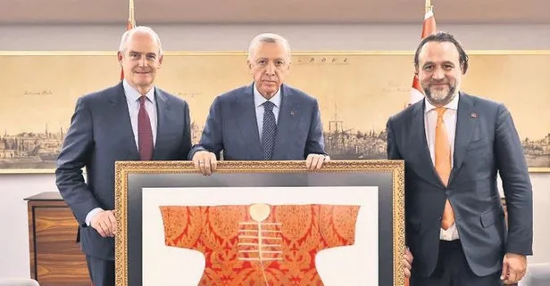 Kabul sonrasında Alibaba Grup Başkanı Michael Evans ve Trendyol Grup Başkanı Çağlayan Çetin, çağdaş Türk resim sanatçısı İsmail Acar’ın Trendyol Sanat’a özel olarak ürettiği “Kaftan” adlı eserini Başkan Recep Tayyip Erdoğan’a takdim etti.