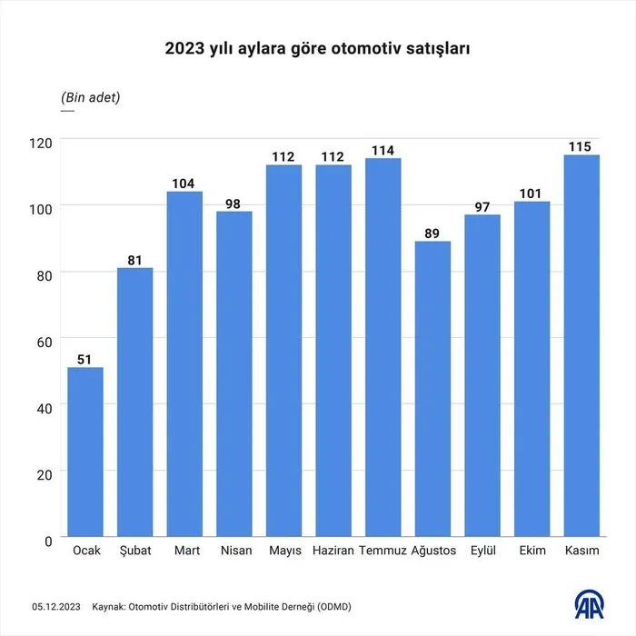 Otomotiv Distribütörleri ve Mobilite Derneğinin (ODMD) kasım ayı verilerine göre, Türkiye otomobil ve hafif ticari araç toplam pazarı, ocak-kasım döneminde yıllık bazda yüzde 60,8 büyüdü. Böylece Türkiye otomotiv pazarı tarihinde ilk kez 1 milyon rakamı aşılarak 1 milyon 73 bin 982 satışa imza atıldı. Daha önce en yüksek satış 983 bin 720 adetle 2016 yılında yapılmıştı.