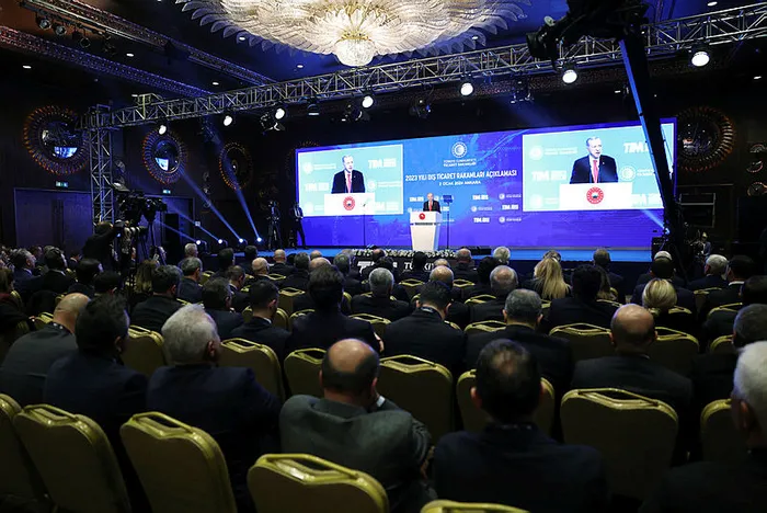 Başkan Recep Tayyip Erdoğan, Ankara'da bir otelde düzenlenen "2023 yılı ihracat rakamlarının açıklanması programı"na katıldı.