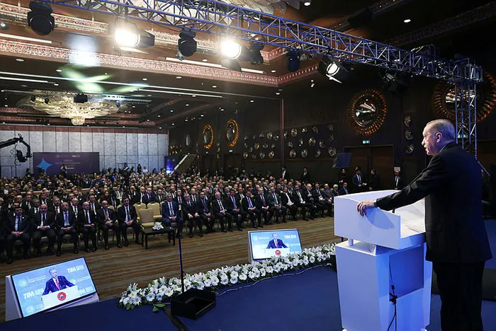 Buradaki konuşmasına, tüm iş dünyasının, milletin yeni yılını kutlayarak başlayan Erdoğan, yeni yıla, Gazze başta olmak üzere bölgede yaşanan savaşlar, depremler ve terörle mücadelede kaybedilen şehitlerin acısı nedeniyle buruk girildiğini belirtti.