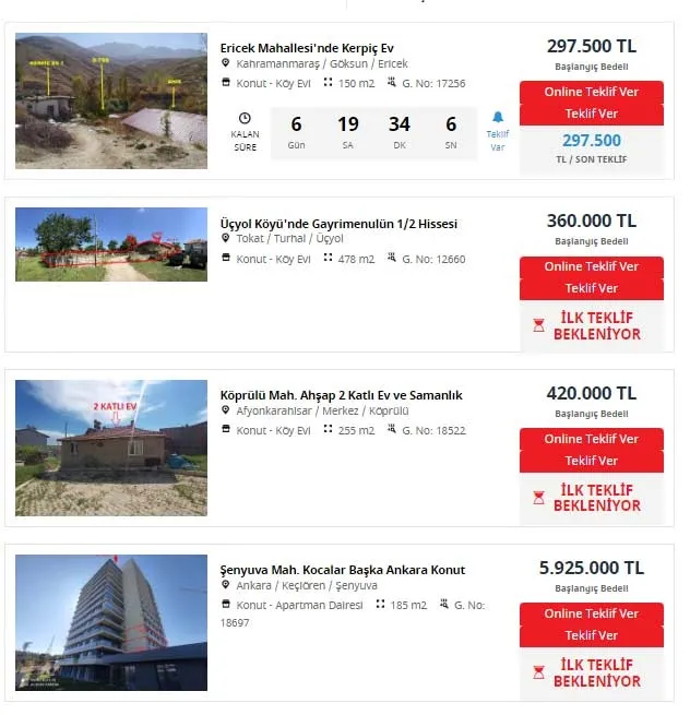 Ayrıca, bankaların konut satışlarında uyguladıkları ihale sistemleri de evlerin ucuz fiyatlarla satılmasına katkı sağlıyor. Bu sistemde konut almak isteyenler teklif veriyorlar ve bir süreliğine geri sayım başlıyor. Bu süre içinde başkaları da daha yüksek tekliflerde bulunabiliyorlar. Bu nedenle bankalar, başlangıç fiyatını düşük belirleyip, rekabetçi bir ortamda fiyatın oluşmasını bekliyorlar. Sonuç olarak, az talep gören konutlar kelepir fiyatlarla satışa çıkarılıyorlar.