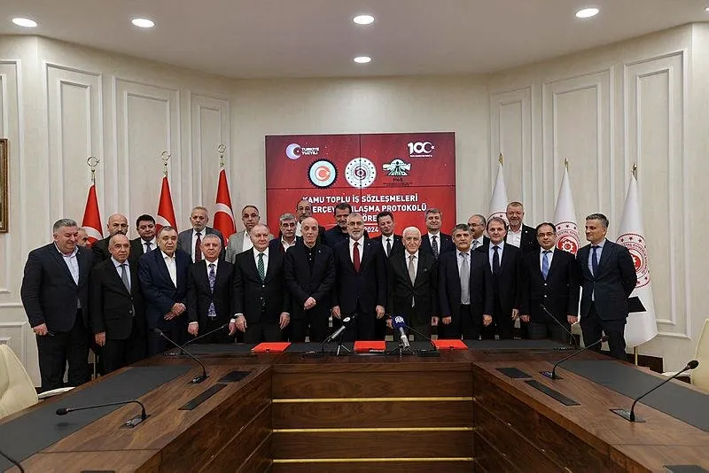 Çalışma ve Sosyal Güvenlik Bakanlığı koordinasyonunda, TÜRK-İŞ ve HAK-İŞ ile Türk Ağır Sanayii ve Hizmet Sektörü Kamu İşverenleri Sendikası (TÜHİS) arasında "Kamu Toplu İş Sözleşmeleri Ek Çerçeve Anlaşma Protokolü" imzalandı.