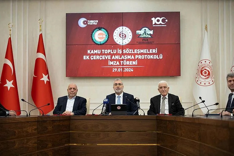 Çalışma ve Sosyal Güvenlik Bakanı Vedat Işıkhan, törendeki konuşmasında, 2023-2024 dönemini kapsayan Toplu İş Sözleşmesi Çerçeve Anlaşma Protokolünün 9 Mayıs 2023'te imzalandığını anımsattı.